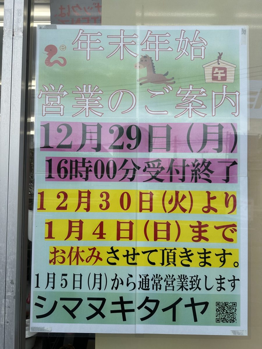 年末年始営業日及び営業時間のご案内
